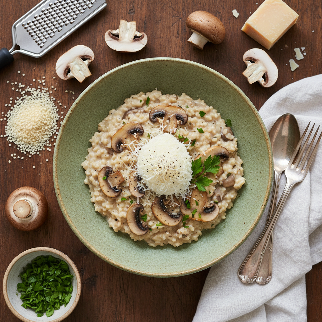 Sorghotto aux champignons, légumes et parmesan